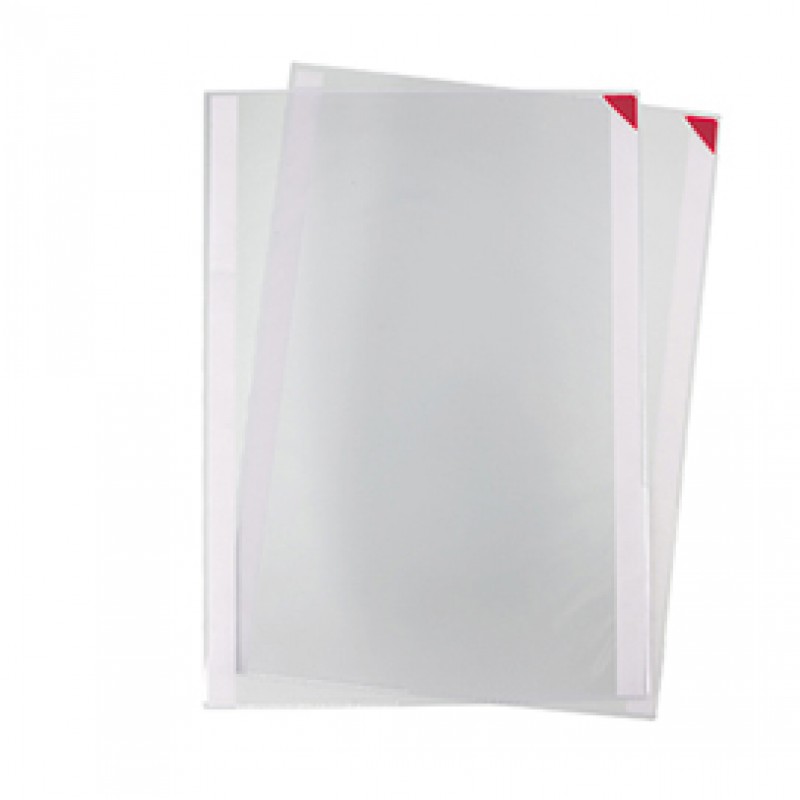 Robuste cartelline a L in PVC con retro adesivo, apertura a L e chiusura tramite magnete angolare rosso. Confezione da 2 pezzi, capaictà 10 fogli. Removibile e riutilizzabile. Dimensione: F.to A3 31,6x44,1cm. Colore: rosso