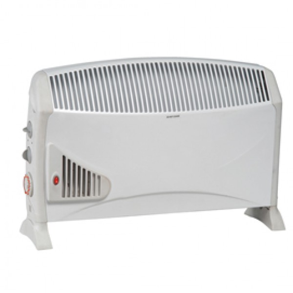 Termoconvettore ventilato con timer 2000W. Il calore viene generato da una resistenza elettrica che scalda l'aria e una ventola provvede a diffonderla. Grado di Protezione IP20, Alimentazione 230V 50 Hz. Superficie riscaldabile: 15-20mq. Timer ON/OFF programmabile 24Ore. Dotata di termostato ambiente regolabile, spegnimento automatico in caso di surriscaldamento, selettore di ventilazione, maniglie laterali per il trasporto. Il termoventtore è composto da un corpo in metallo e da modanature in ABS. Colore grigio chiaro. Dimensioni: 45,5x17x70H cm