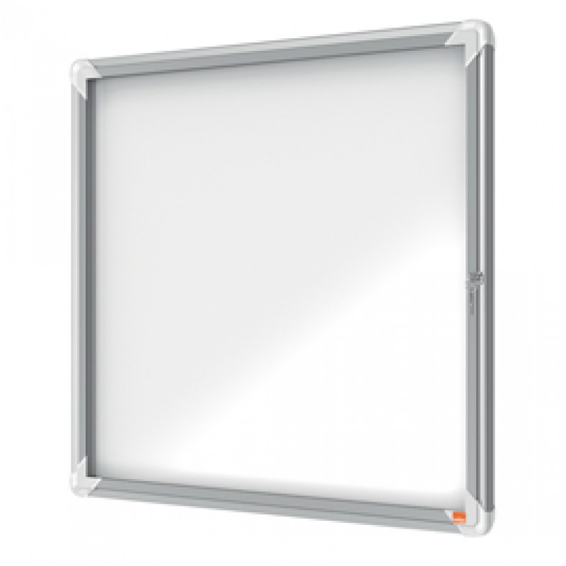 Ad anta battente. Moderna, sicura e resistente all'umoditÓ. nuovo design con robusta cornice in alluminio e vetro di sicurezza di 4mm. waterproof to iec 60529. Fondo in acciaio bianco magnetico per uso con magnetini o scrivibile con pennarelli a secco. Fissaggio semplice effettuabile da una sola persona. Serratura con 2 chiavi. Dimensioni esterne: 709x668mm.