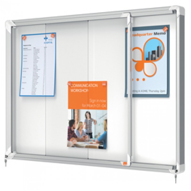 Bacheca per interni - fondo in metallo - 8 fogli A4 - ante scorrevoli - Nobo