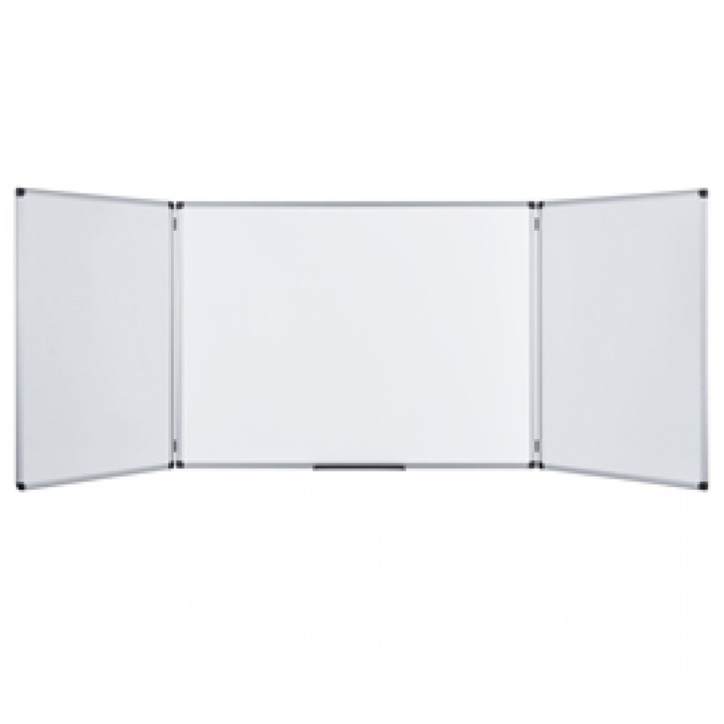 Lavagna salvaspazio multisuperficie: lo spazio a disposizione per le vostre riunioni è triplicato! La superficie della lavagna è in acciaio smaltato antigraffio e antidissolvenza, magnetica e scrivibile. L'apertura a compasso delle sezioni consente di nascondere materiale riservato o pre-preparato. Fornita con vaschetta porta accessori e kit per fissaggio a muro. Dimensioni chiusa: 90x120cm. Dimensioni aperta: 90x240cm. Garanzia di 25 anni in condizioni di utilizzo normale.